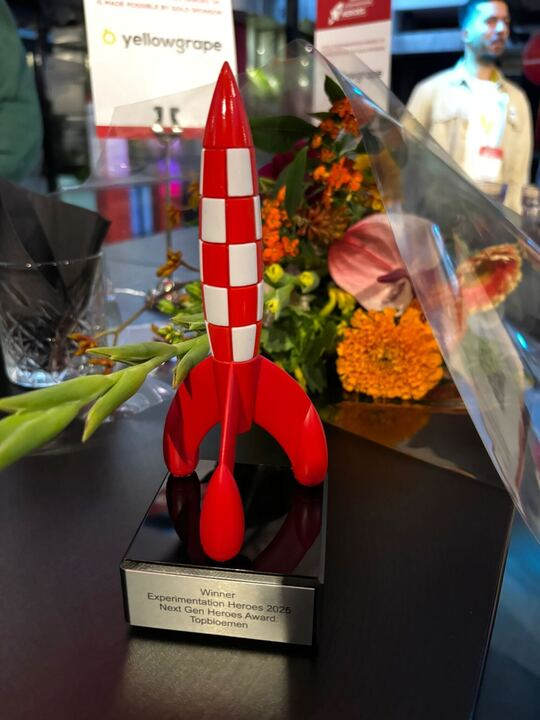 Als mooie erkenning werd Topbloemen samen met Yellowgrape met deze case tijdens Experimentation Heroes 2025 beloond met de Next Gen Heroes Award. Een resultaat dat het geleverde werk beloont en uitnodigt om deze aanpak verder te verdiepen en te blijven vernieuwen.